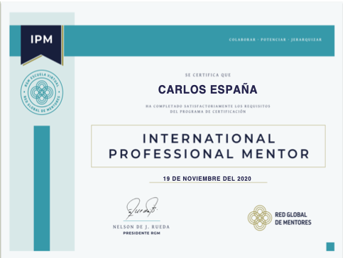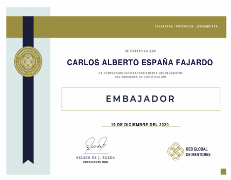 Carlos España es certificado como mentor por el International Leadership Council y recibe un reconocimiento por su trayectoria en gestión de talento humano.